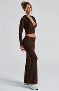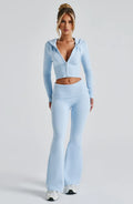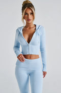 Keep it chic, cute, and cosy with this knit two piece set — the ultimate blend of comfort and effortless style. Featuring a cropped zip-up hoodie and matching knit pants, this fitted silhouette flatters your figure while keeping you warm and relaxed. The ribbed details, two-way zipper, and adjustable drawstring make it perfect for your off-duty days with a touch of sophistication.