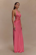 Command attention in the ELARA Satin Lace Dress a captivating blend of softness and allure. Designed with a halter tie V neckline and a gently gathered bust, this silhouette glides into a sheer lace body that flatters the form effortlessly. The daring low back adds a hint of seduction, while the flowing maxi length and invisible zip ensure a sleek, seamless finish. Partially lined for graceful coverage, Elara embodies understated glamour with a bold, feminine edge.