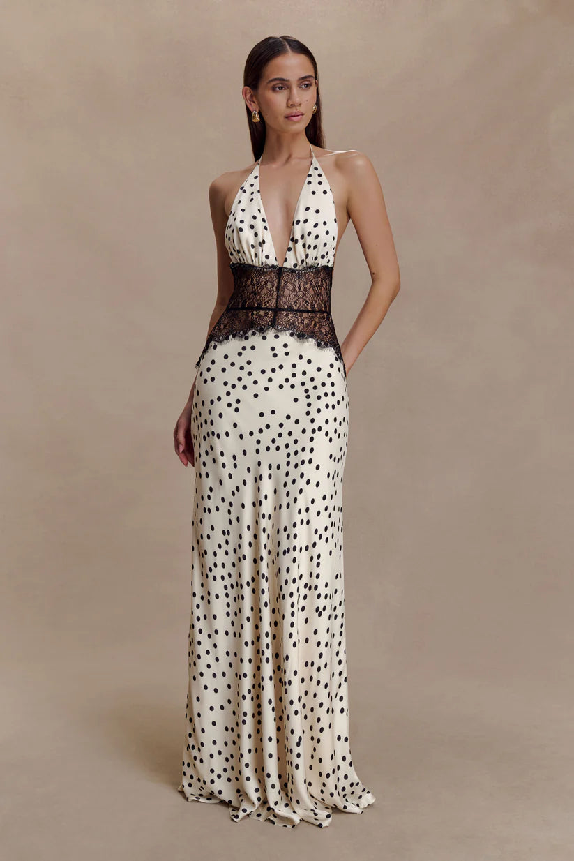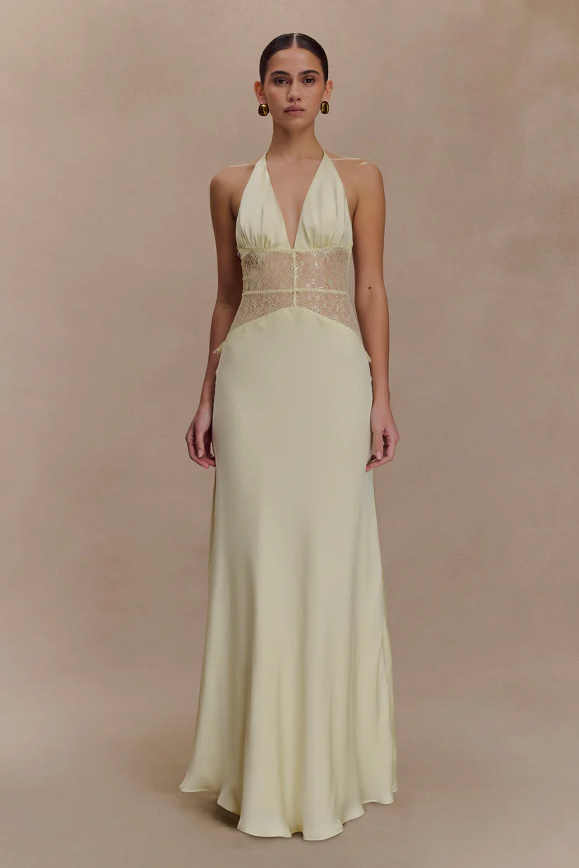 Elara Satin Lace Maxi Dress