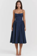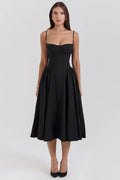 Step into timeless elegance with the Elodie Summer Corset Midi Dress – where classic structure meets effortless summer grace. Designed to flatter the feminine figure, this dress features a corset-style bodice that hugs the waist and a softly pleated A-line skirt that flows with every movement.
