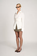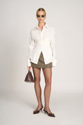 Effortless elegance in a flattering wrap. The sculpted waist and soft drape create a polished silhouette, perfect for work, brunch, or off-duty chic.