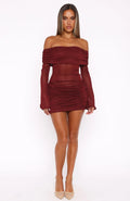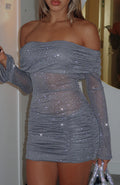 Make it YOUR moment in the Luna Glow Mini Dress. Features an off the shoulder design, long sleeves with slight flare, mini length, sheer bodice and sleeves, ruched detailing, lined at skirt and bust, gorgeous fabric with an iridescent glow, and stretch material for an easy slip on design. Style with statement heels and a shoulder bag for a look that's sure to turn heads.