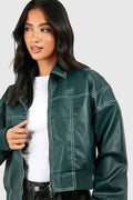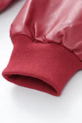 Turn heads in the Lyva Leather Jacket – a bold, oversized bomber in deep burgundy faux leather. Featuring contrast stitching, ribbed cuffs, and a relaxed fit, it's your go-to layer for effortless street style with attitude.