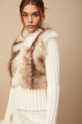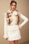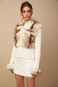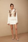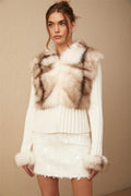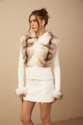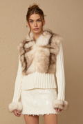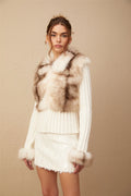 The Maélie Jacket captures the essence of effortless winter elegance. Crafted in a soft ribbed knit with subtle stretch, it features contrast faux-fur panels in warm white and brown tones. Wide lapels, long sleeves, and fur-trimmed cuffs add a vintage-inspired edge, while a front zip fastening and frayed hem lend a touch of modern attitude.