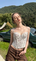 Whether you're heading to a romantic dinner date, enjoying alfresco dining, sipping champagne with the girls, or exploring rooftop bars, the MILA Ivory Lace Underwired Corset Top is the perfect choice. It's also a great option for vacations and bottomless brunches.