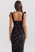 The Noir Élégance Maxi Dress combines timeless sophistication with modern charm. Featuring a flowing silhouette and exquisite craftsmanship, it offers a flattering fit that subtly enhances your figure. The gently flared hem adds a feminine, airy touch, making it the perfect choice for summer days or special occasions.