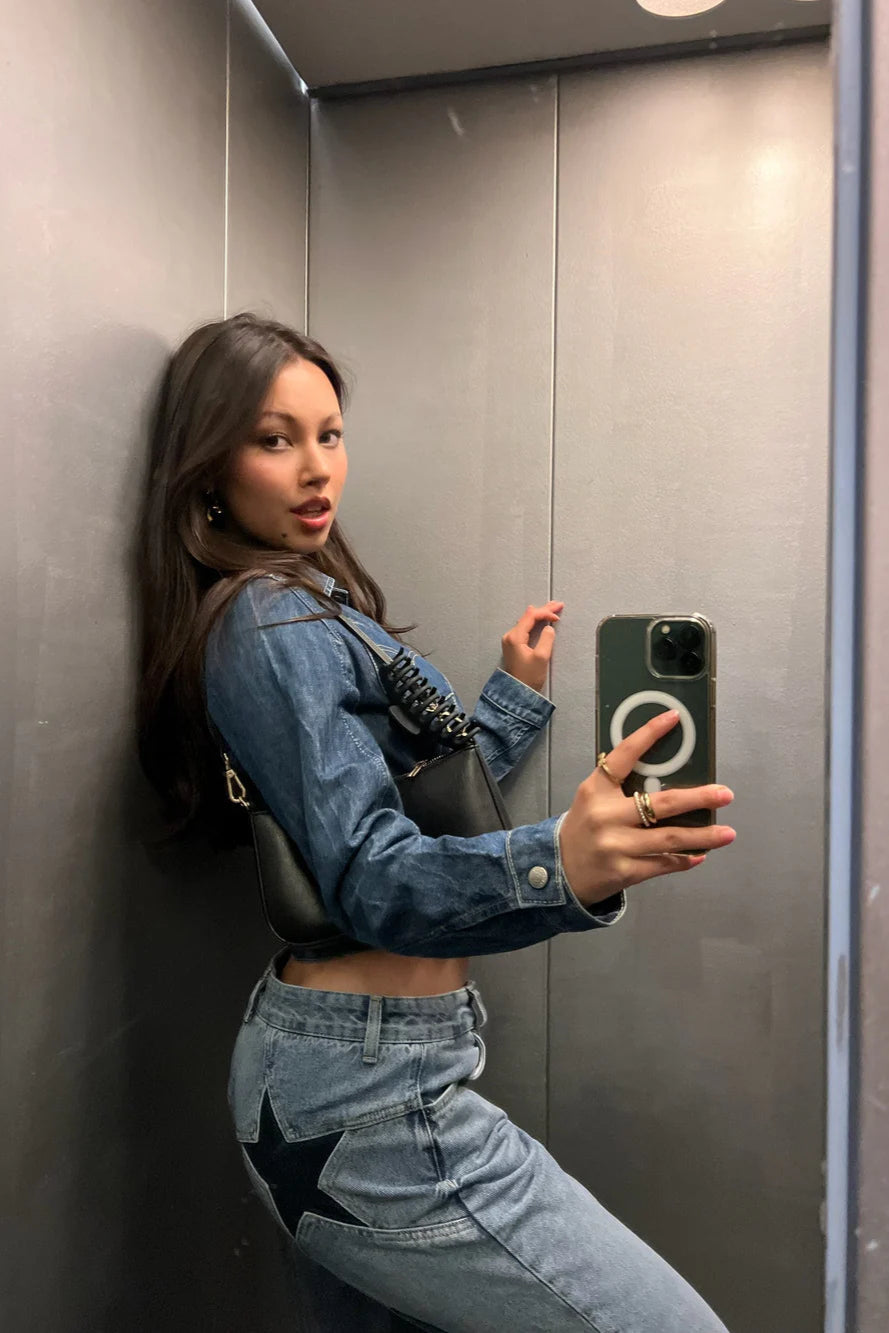 For an oversized look, choose your normal size. If you prefer a tighter fit, we recommend sizing down — the jeans run slightly large.