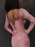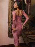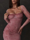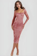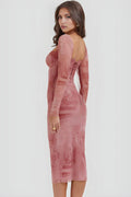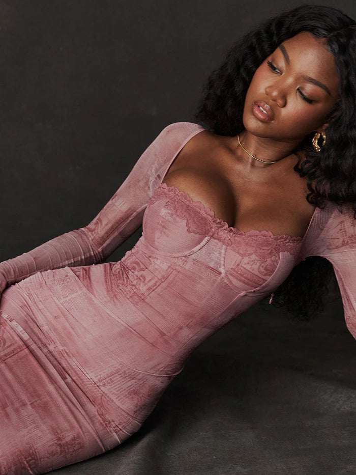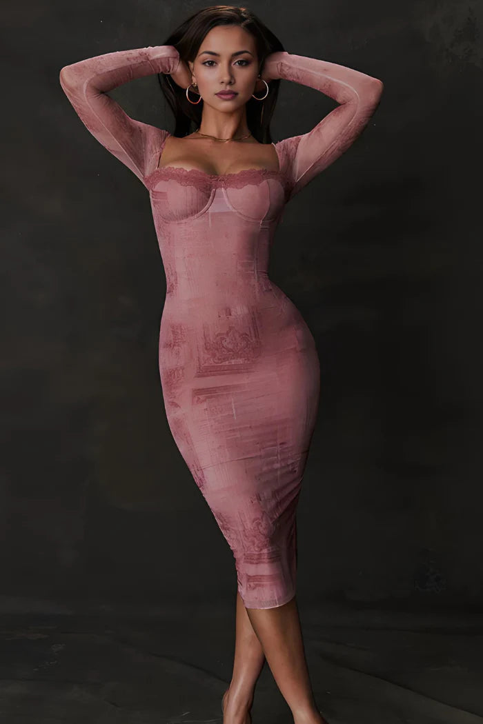 Embrace the allure of fall in our Vestido - Midi Dress long sleeve dress. Crafted from soft stretch mesh and featuring a mesmerizing pink print, this dress provides a perfect fit that accentuates your curves. The underwire cups and internal boning provide support and create a waist-cinching silhouette for the most perfect fall ensemble.