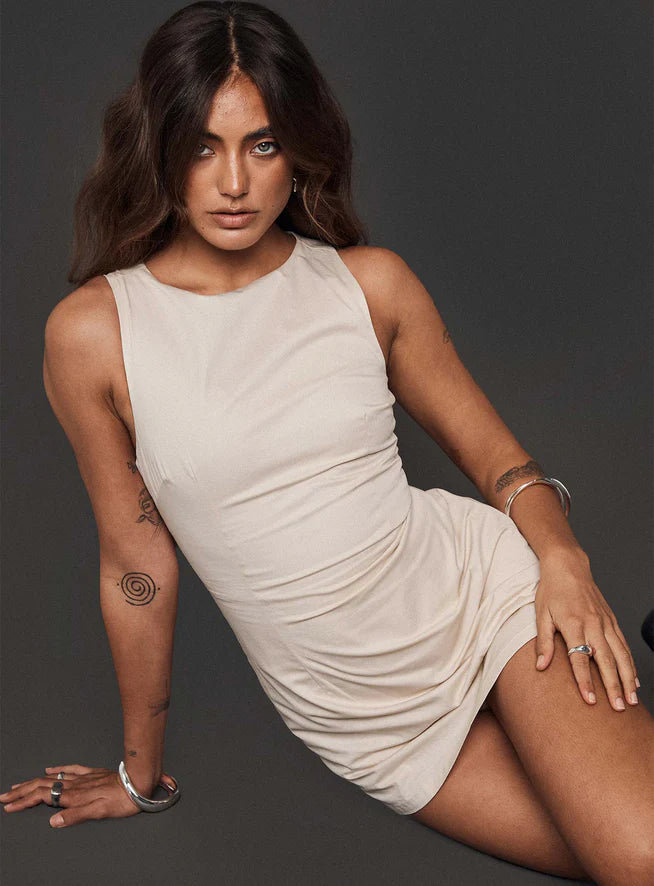 - Round neckline, built-in shorts, invisible zip fastening at back